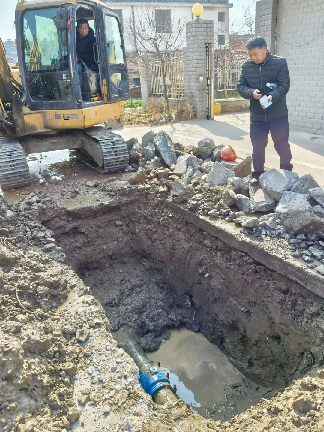 1月21日下午,水務(wù)供水公司高新區(qū)營業(yè)所接到居民報(bào)修電話,孫莊中學(xué)圍墻西側(cè)不斷有水流入排水井內(nèi),懷疑主供水管道出現(xiàn)破裂。接到報(bào)修后,高新區(qū)營業(yè)維修人員第一時(shí)間趕到現(xiàn)場。到達(dá)現(xiàn)場后,維修人員迅速投入排查工作。但因現(xiàn)場比較復(fù)雜無法確定漏點(diǎn),后邀請城區(qū)探漏人員的協(xié)助探查,圈出了漏水位置。1月22日,高新區(qū)營業(yè)所搶修班組天剛亮就奔赴現(xiàn)場。但開挖后實(shí)際情況比預(yù)想的更為嚴(yán)重,破裂的管道位于水泥道路中間,周邊商